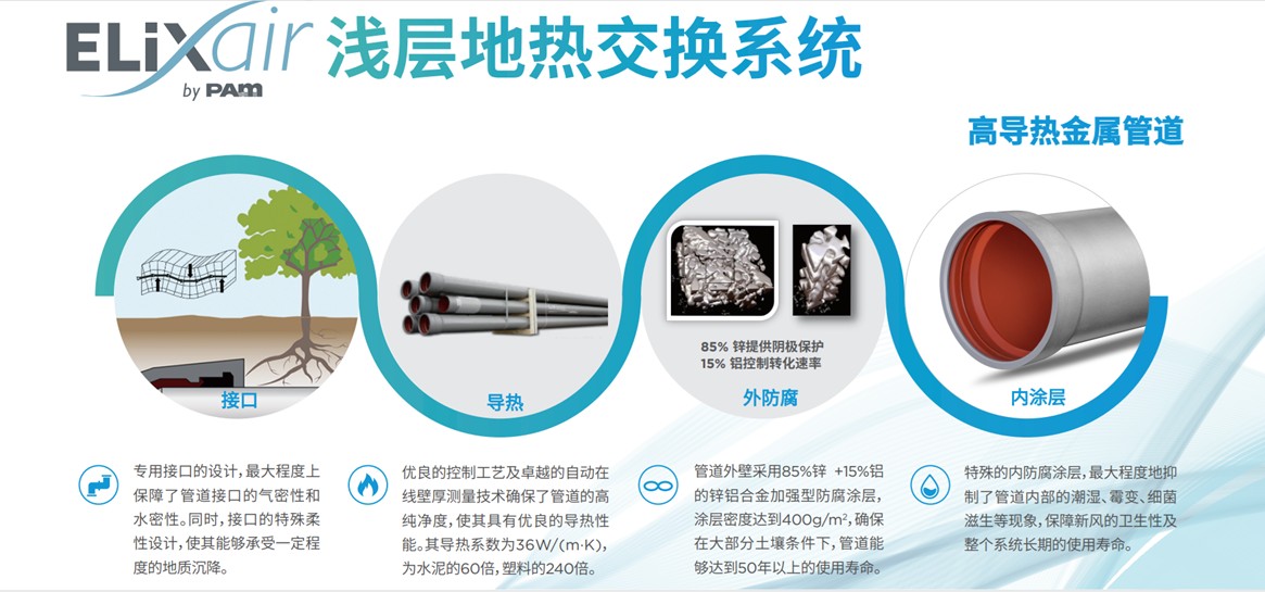 浅层地热新风交换系统 利用地下浅层土壤温度有着“冬暖夏凉”特点,通过地埋高导热金属管道将空气与土壤进行热交换,对空气进行夏季预冷、冬季预热,从而调节室内空气,有效降低新风、空调负荷,舒适环保,低碳节能。 功能 Application Scenario 成功案例 兰州中建大厦 上海临港综合区先进制造园#4楼地下餐厅 河南新乡中欧产业园项目 (厂房办公区) 浅层地热新风交换系统