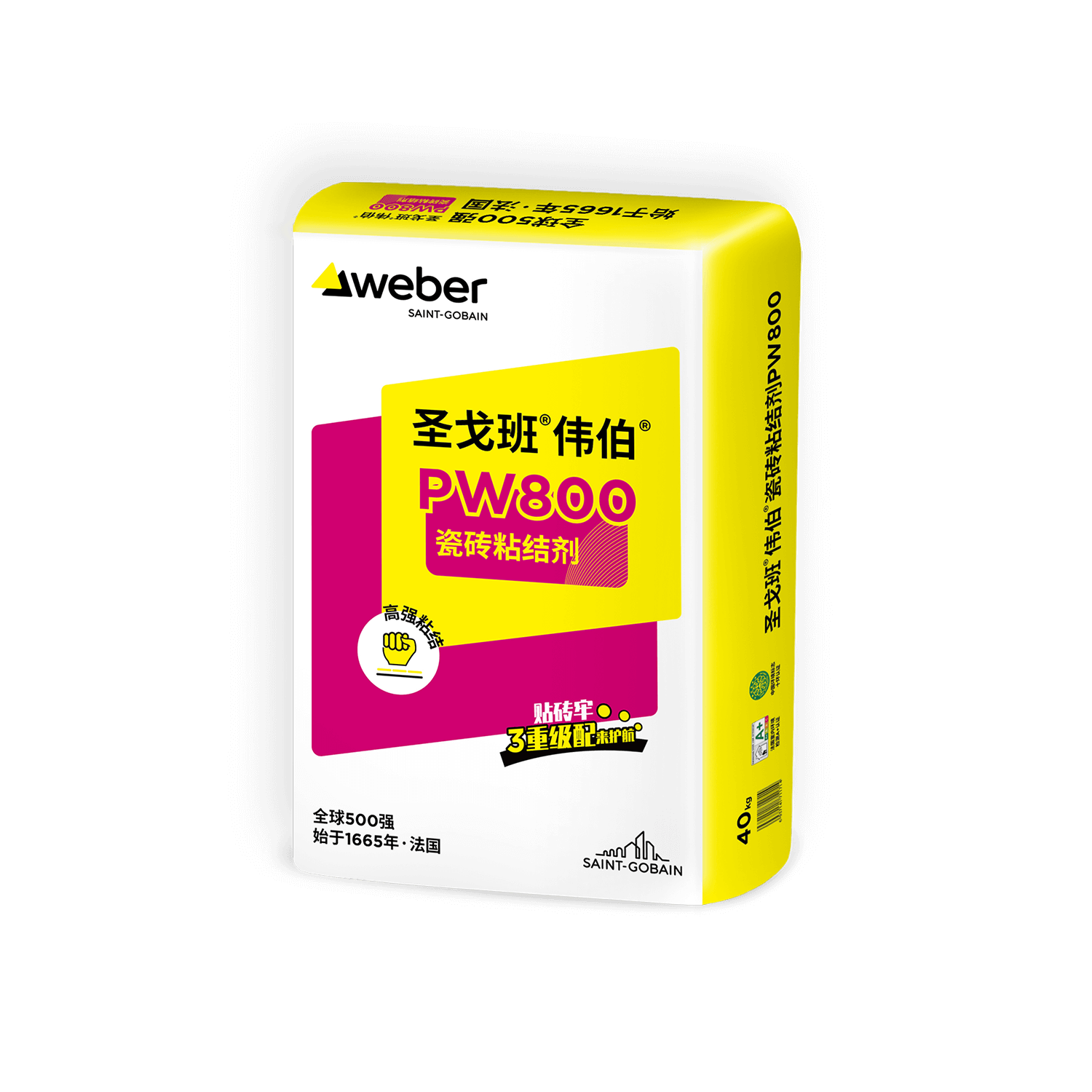 圣戈班®伟伯®瓷砖粘结剂 PW800是水泥基聚合物改性瓷砖粘结产品,搭配背胶类产品可满足玻化砖、石材的粘贴,采用圣戈班®伟伯®三重级配配方,具有高保水、高满浆、高强度等特点,施工手感佳,通过法国室内环境检测A+认证和十环认证,全面有效的保护家居装饰和家庭健康。