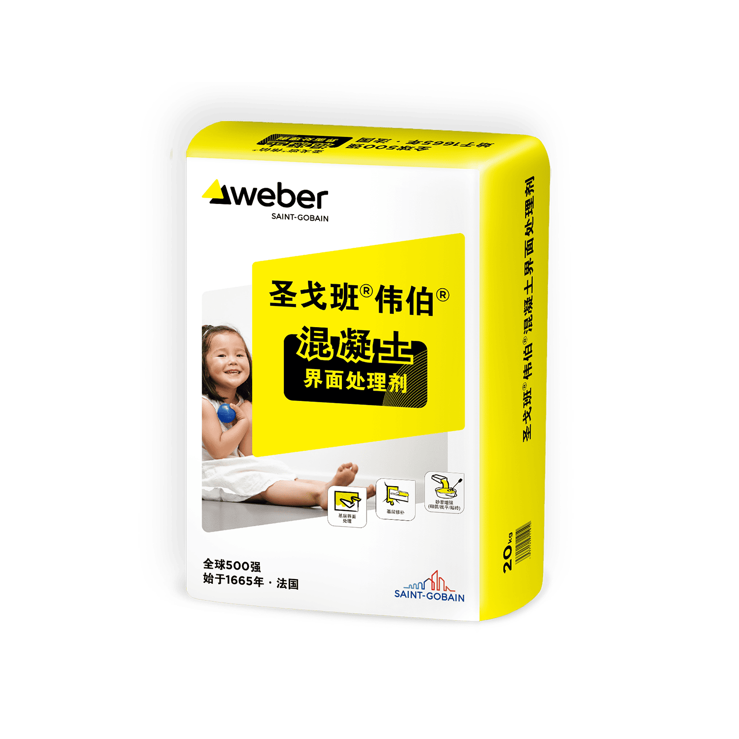 圣戈班®伟伯® 混凝土界面处理剂是单组份水泥基高聚合物改性产品,主要运用于混凝土施工脱模后的界面处理、基层薄找平和局部的修补,该产品添加了多种高分子复合添加剂,经过混凝土界面处理剂处理过的基层能够与其他水泥基材料牢固结合,并具有较高的耐水、耐温、耐冻融性能,避免抹灰层开裂、空鼓、起壳、脱落的现象,省时省工。同时,经过与水泥和砂的适当配比,可以用于砌墙,贴砖,找平等常见施工场景。