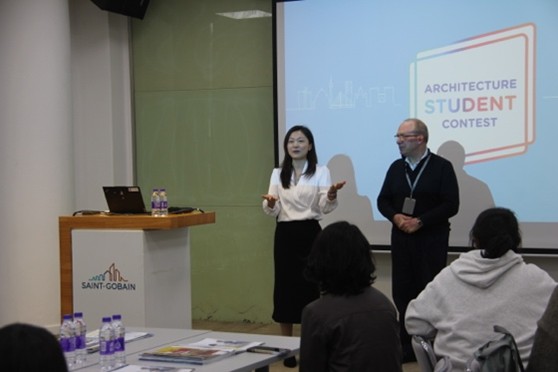 四位来自业务部门及研发中心的同事们分别从他们的专业领域出发,为同学们讲解了圣戈班建筑材料的性能和应用以及建筑材料生命周期评估,旨在帮助同学们在完成设计方案的过程中,更准确且恰到好处地应用圣戈班的建筑材料,并充分考量设计方案的环境影响。讲座结束后,同学们还参观了上海研发中心的展厅,了解相关产品的实物及其应用行业。