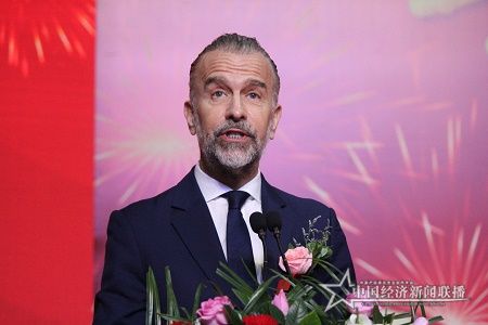 中国经济新闻联播《中经会客厅》主持人嘉宝:今天我们非常高兴,非常荣幸邀请到了圣戈班集团高级副总裁兼亚太区首席执行官孟昊文先生。孟先生,给大家伙打个招呼吧